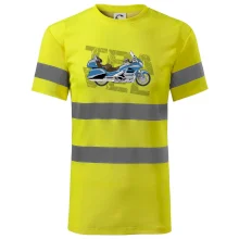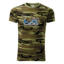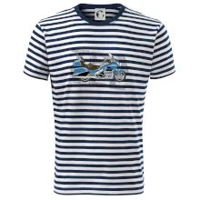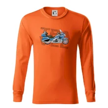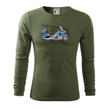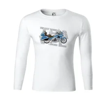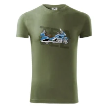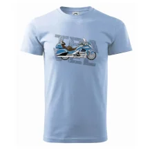 Tričko pre motorkára, na ktorom je modrá cestovná motorka Amerika. Motorkárske tričko, kde je cestovná motorka, musí mať doma každý vášnivý motorkár. Tričko s motorkou je vhodný darček pre motorkára.