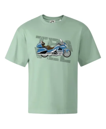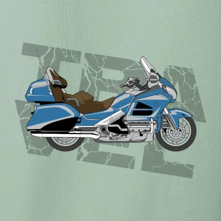 Tričko pre motorkára, na ktorom je modrá cestovná motorka Amerika. Motorkárske tričko, kde je cestovná motorka, musí mať doma každý vášnivý motorkár. Tričko s motorkou je vhodný darček pre motorkára.