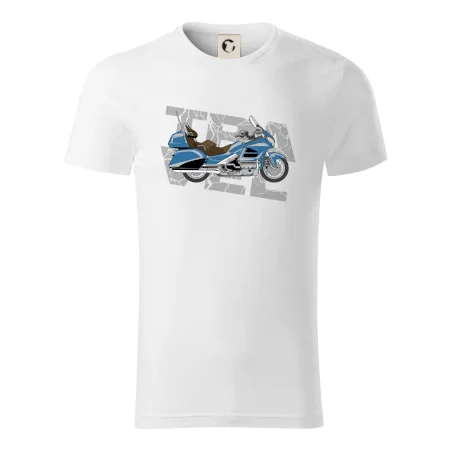 Tričko pre motorkára, na ktorom je modrá cestovná motorka Amerika. Motorkárske tričko, kde je cestovná motorka, musí mať doma každý vášnivý motorkár. Tričko s motorkou je vhodný darček pre motorkára.