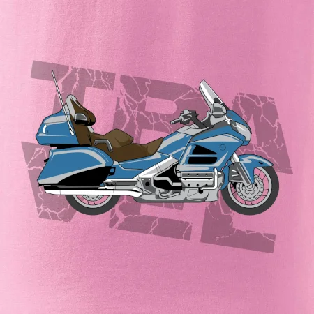Tričko pre motorkára, na ktorom je modrá cestovná motorka Amerika. Motorkárske tričko, kde je cestovná motorka, musí mať doma každý vášnivý motorkár. Tričko s motorkou je vhodný darček pre motorkára.