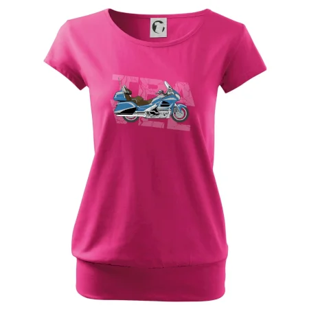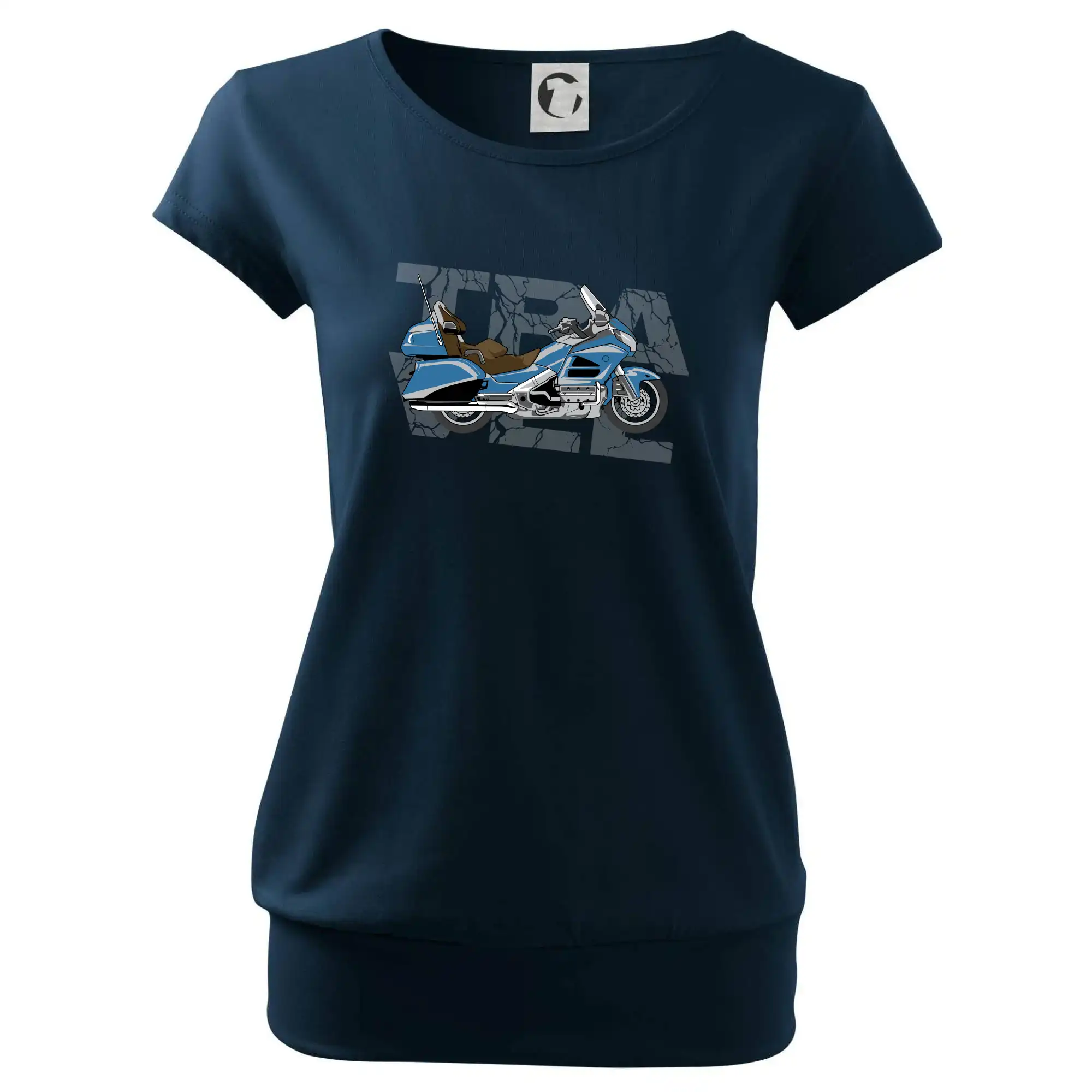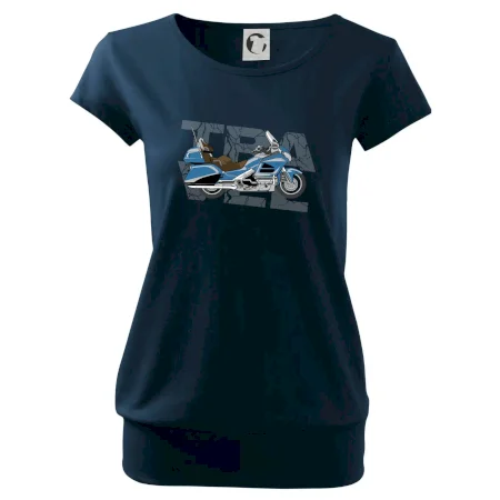 Tričko pre motorkára, na ktorom je modrá cestovná motorka Amerika. Motorkárske tričko, kde je cestovná motorka, musí mať doma každý vášnivý motorkár. Tričko s motorkou je vhodný darček pre motorkára.