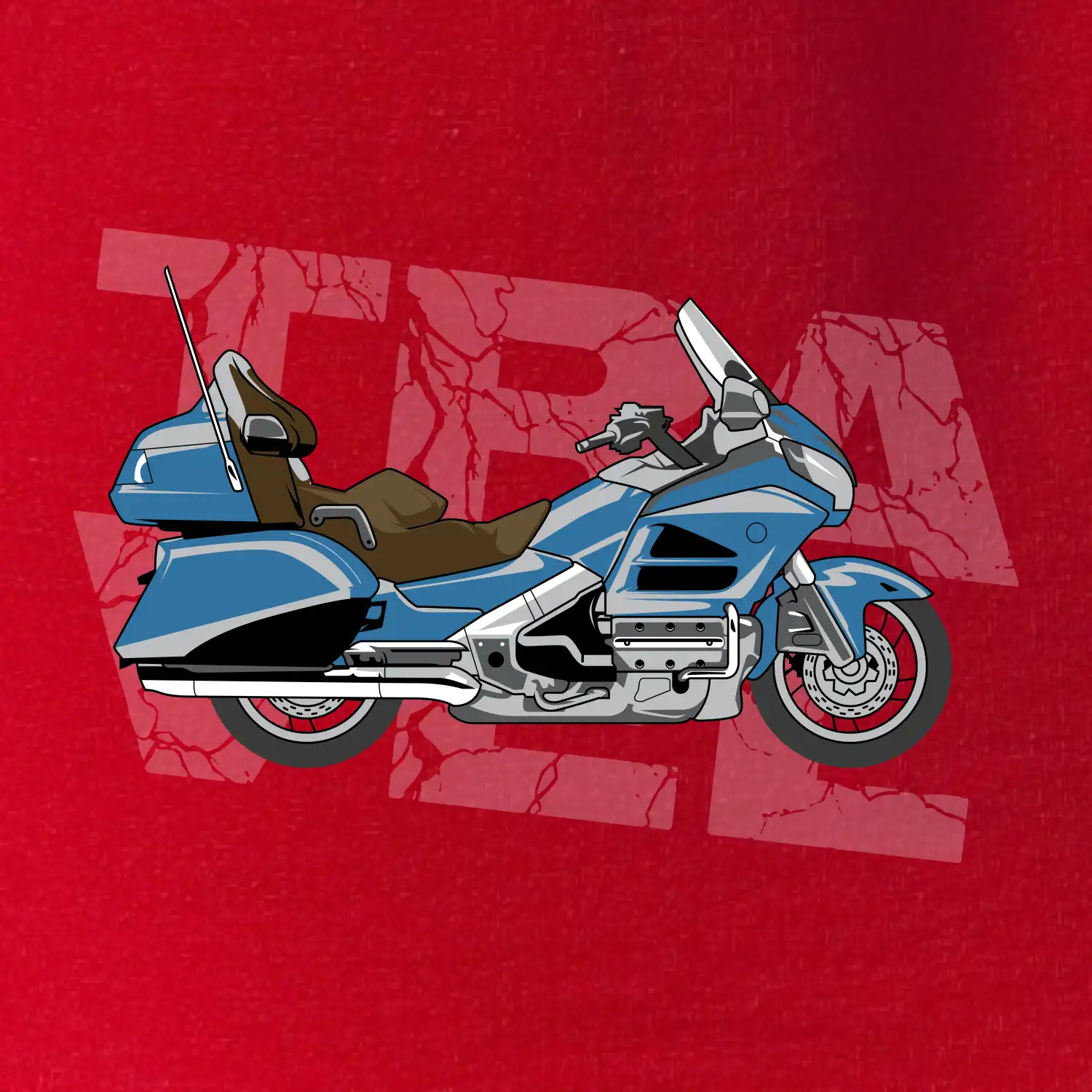 Tričko pre motorkára, na ktorom je modrá cestovná motorka Amerika. Motorkárske tričko, kde je cestovná motorka, musí mať doma každý vášnivý motorkár. Tričko s motorkou je vhodný darček pre motorkára.
