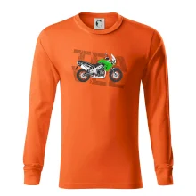 Tričko pre motorkára, na ktorom je zelená cestovná enduro motorka. Motorkárske tričko, kde je cestovná motorka, musí mať doma každý vášnivý motorkár. Tričko s motorkou je vhodný darček pre motorkára.