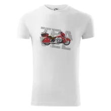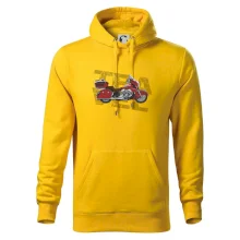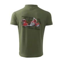 Tričko pre motorkára, na ktorom je červená cestovná motorka Amerika. Motorkárske tričko, kde je cestovná motorka, musí mať doma každý vášnivý motorkár. Tričko s motorkou je vhodný darček pre motorkára.
