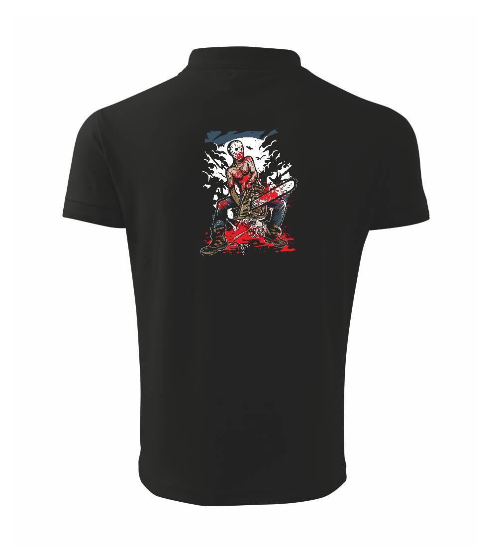 Zabijak s motorovou pílou, tričko s hororovou klasikou, kde krv strieka prúdom a v motorovej píle nikdy nedôjde benzín.