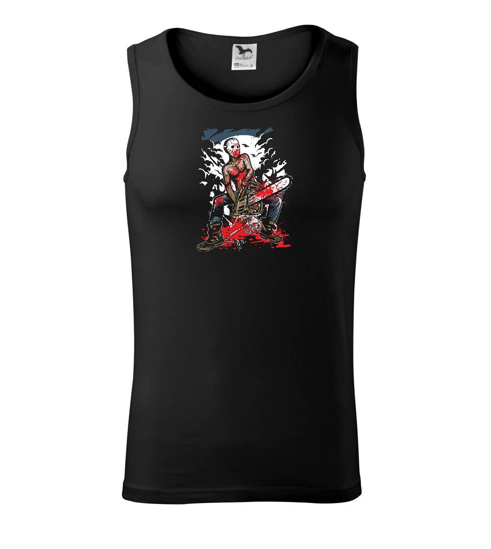 Zabijak s motorovou pílou, tričko s hororovou klasikou, kde krv strieka prúdom a v motorovej píle nikdy nedôjde benzín.