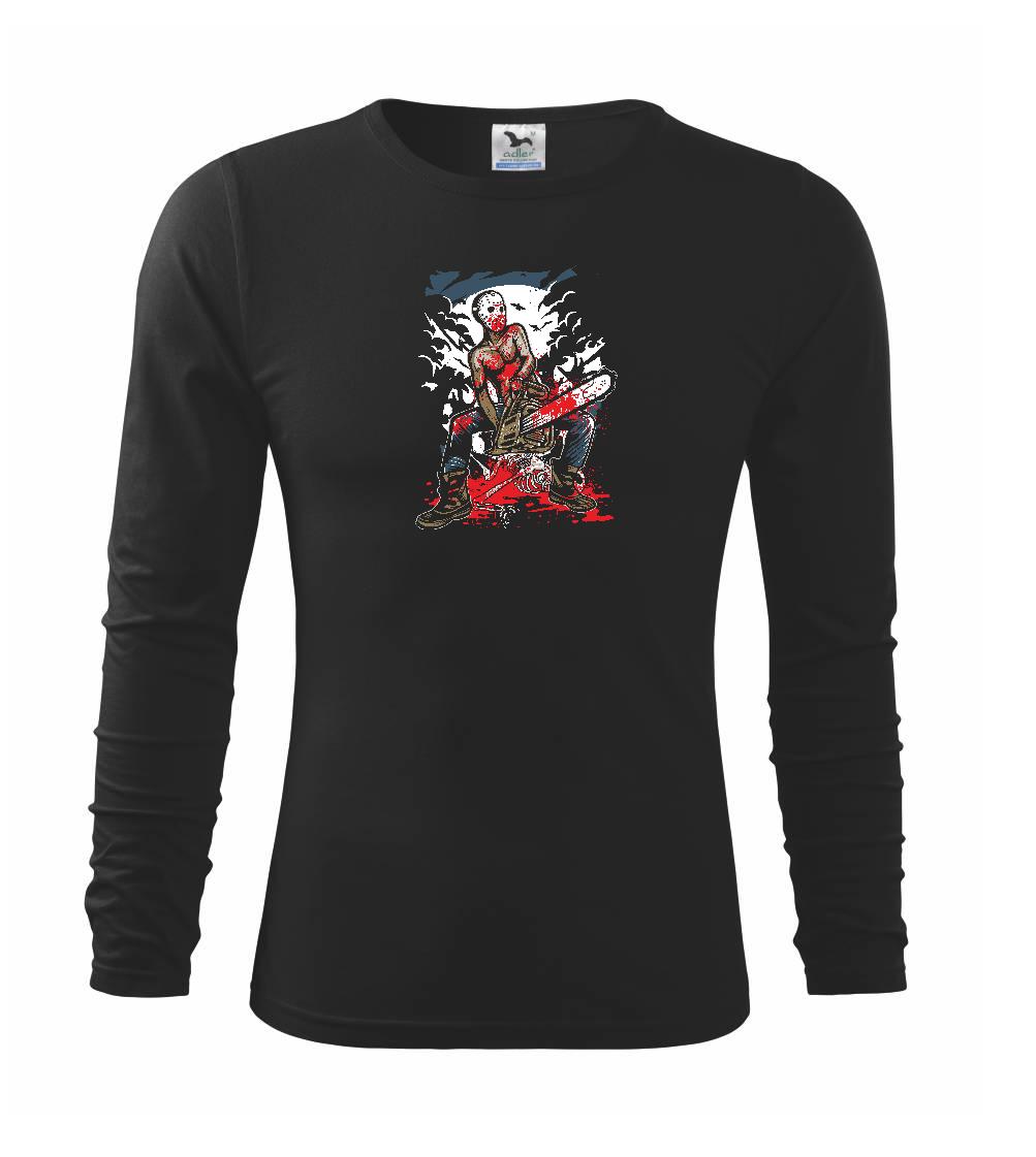 Zabijak s motorovou pílou, tričko s hororovou klasikou, kde krv strieka prúdom a v motorovej píle nikdy nedôjde benzín.