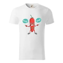 Pánske tričko s krátkym rukávom vyššej gramáže. Módne, priliehavý strih s bočnými švami. Úzky lem priekrčníka z rebrového úpletu s prídavkom 5% elastanu. Vnútorná časť zadného priekrčníku začistená páskou. Spevnený ramenný šev.
