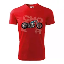 Tričko pre motorkárov, na ktorom je modrá motorka chopper. Motocykel by mal mať na tričku každý správny motorkár. Moto tričko s motorkou je vhodný darček pre motorkárov.