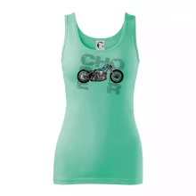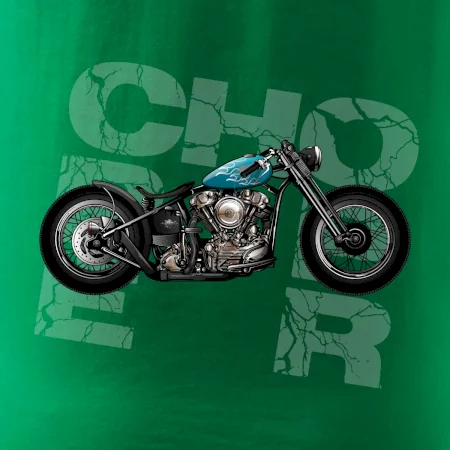 Tričko pre motorkárov, na ktorom je modrá motorka chopper. Motocykel by mal mať na tričku každý správny motorkár. Moto tričko s motorkou je vhodný darček pre motorkárov.