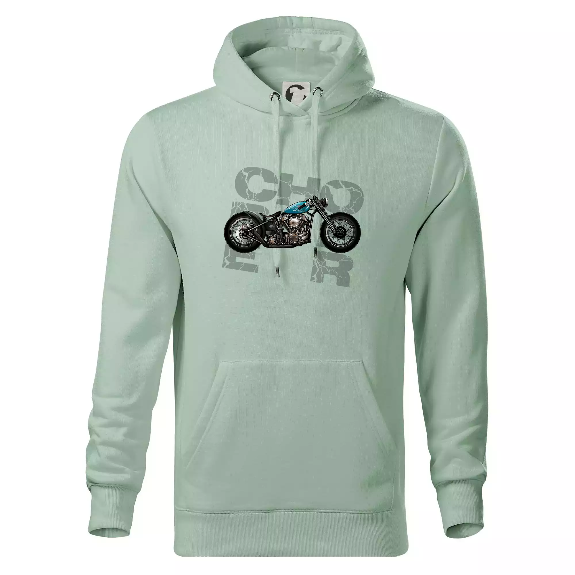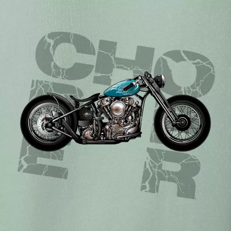 Tričko pre motorkárov, na ktorom je modrá motorka chopper. Motocykel by mal mať na tričku každý správny motorkár. Moto tričko s motorkou je vhodný darček pre motorkárov.