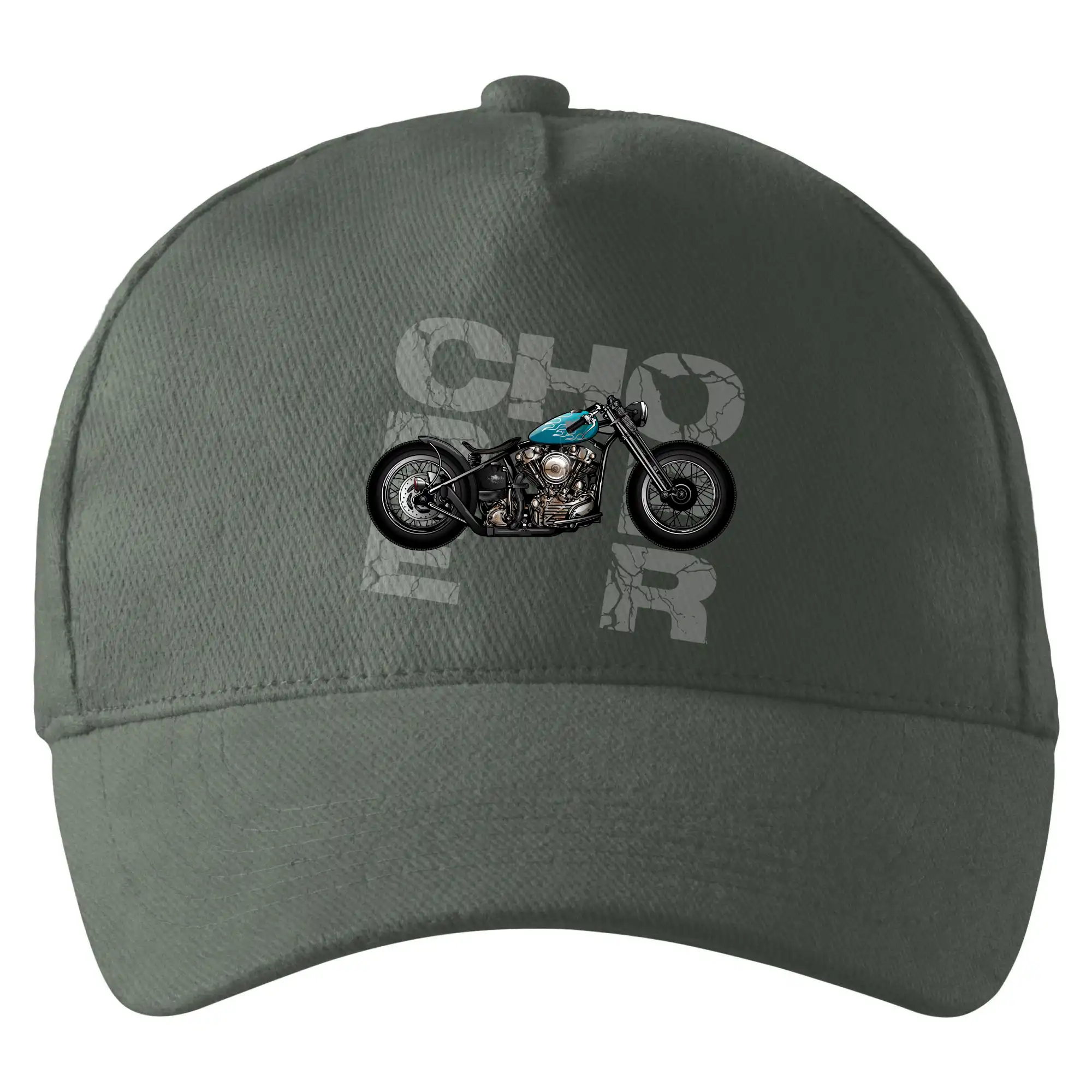 Tričko pre motorkárov, na ktorom je modrá motorka chopper. Motocykel by mal mať na tričku každý správny motorkár. Moto tričko s motorkou je vhodný darček pre motorkárov.
