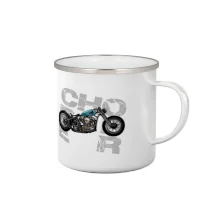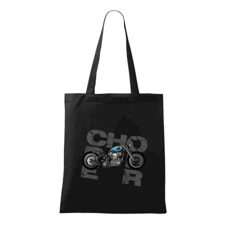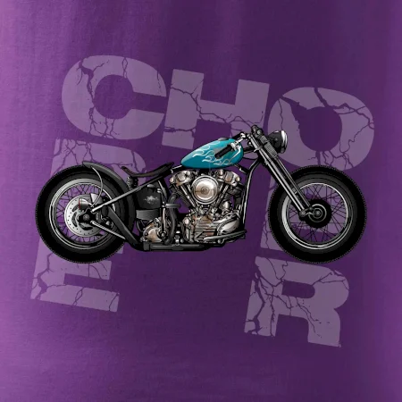 Tričko pre motorkárov, na ktorom je modrá motorka chopper. Motocykel by mal mať na tričku každý správny motorkár. Moto tričko s motorkou je vhodný darček pre motorkárov.