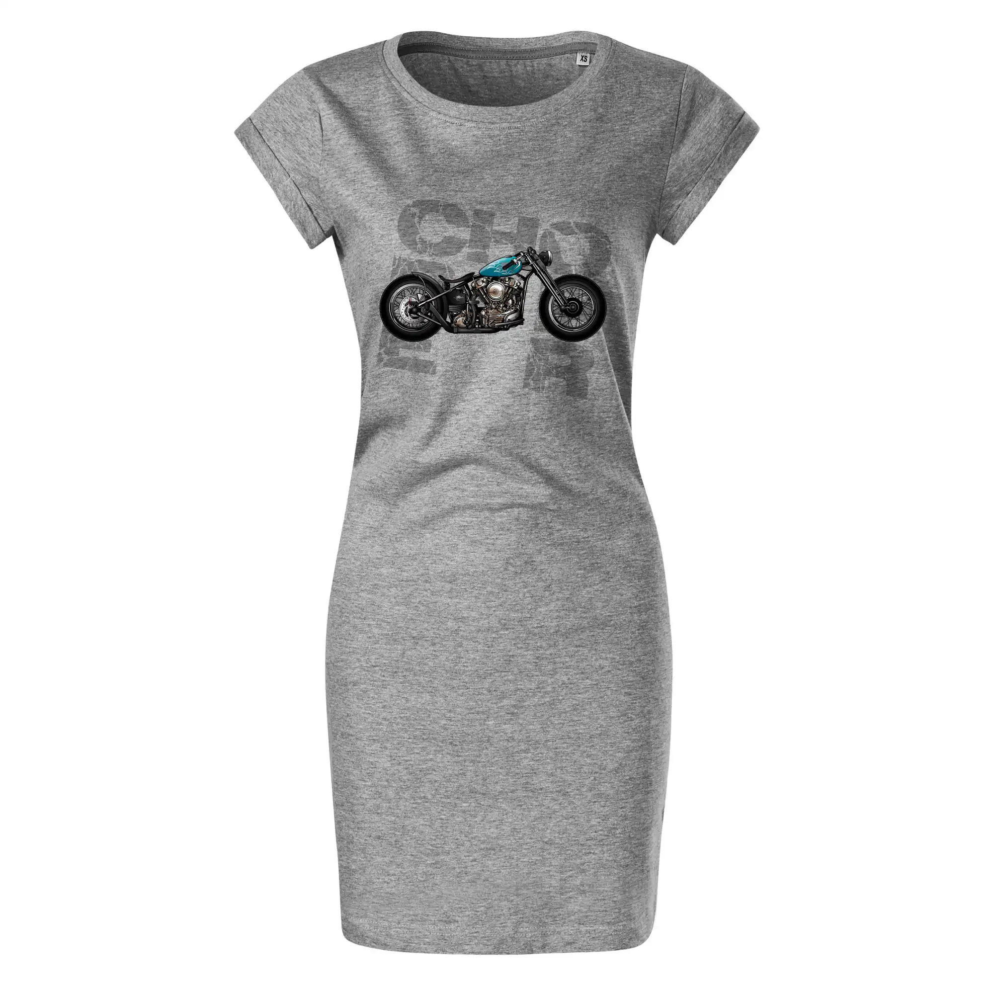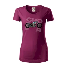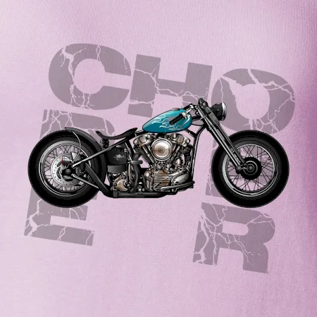 Tričko pre motorkárov, na ktorom je modrá motorka chopper. Motocykel by mal mať na tričku každý správny motorkár. Moto tričko s motorkou je vhodný darček pre motorkárov.