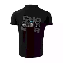 Tričko pre motorkárov, na ktorom je modrá motorka chopper. Motocykel by mal mať na tričku každý správny motorkár. Moto tričko s motorkou je vhodný darček pre motorkárov.