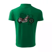 Tričko pre motorkárov, na ktorom je červená motorka chopper. Motocykel by mal mať na tričku každý správny motorkár. Moto tričko s motorkou je vhodný darček pre motorkárov.