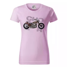 Tričko pre motorkárov, na ktorom je červená motorka chopper. Motocykel by mal mať na tričku každý správny motorkár. Moto tričko s motorkou je vhodný darček pre motorkárov.