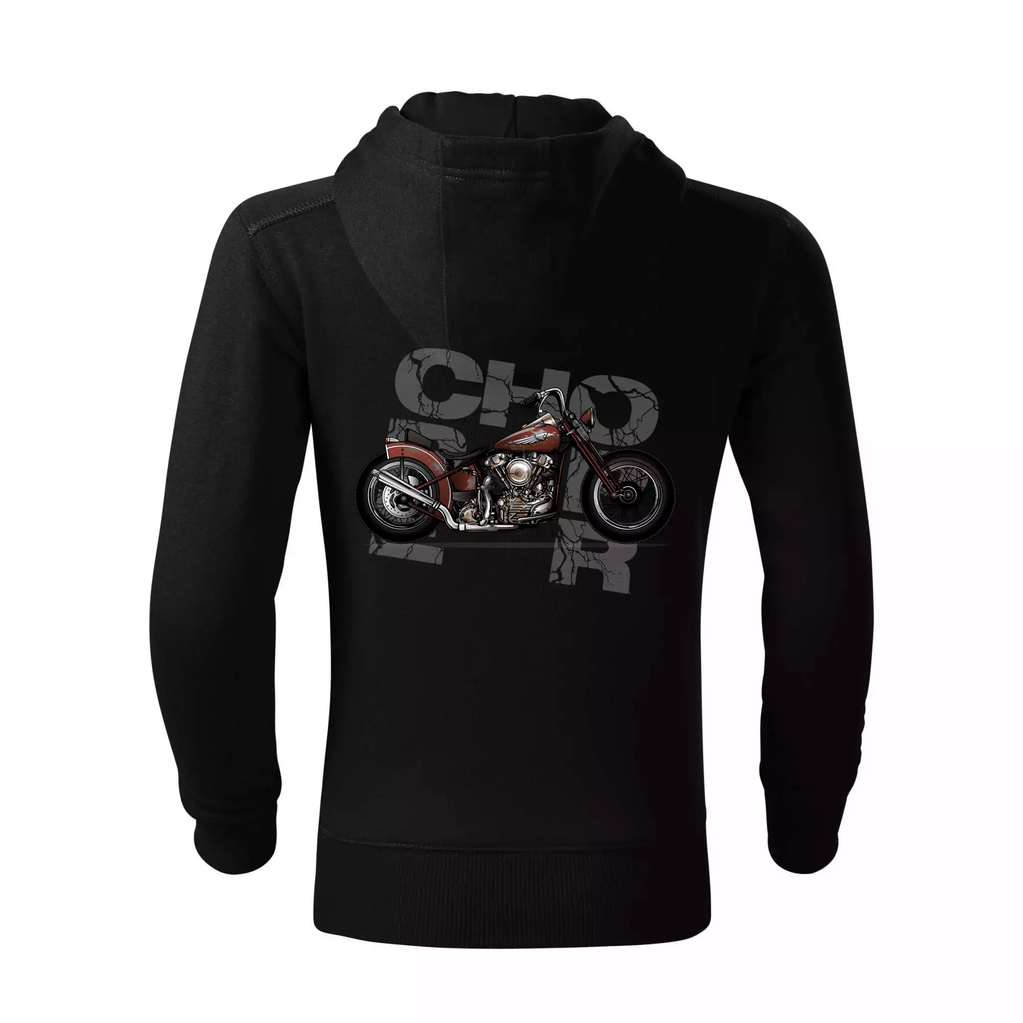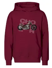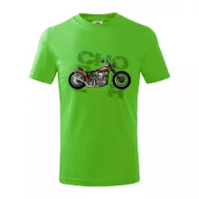 Tričko pre motorkárov, na ktorom je červená motorka chopper. Motocykel by mal mať na tričku každý správny motorkár. Moto tričko s motorkou je vhodný darček pre motorkárov.