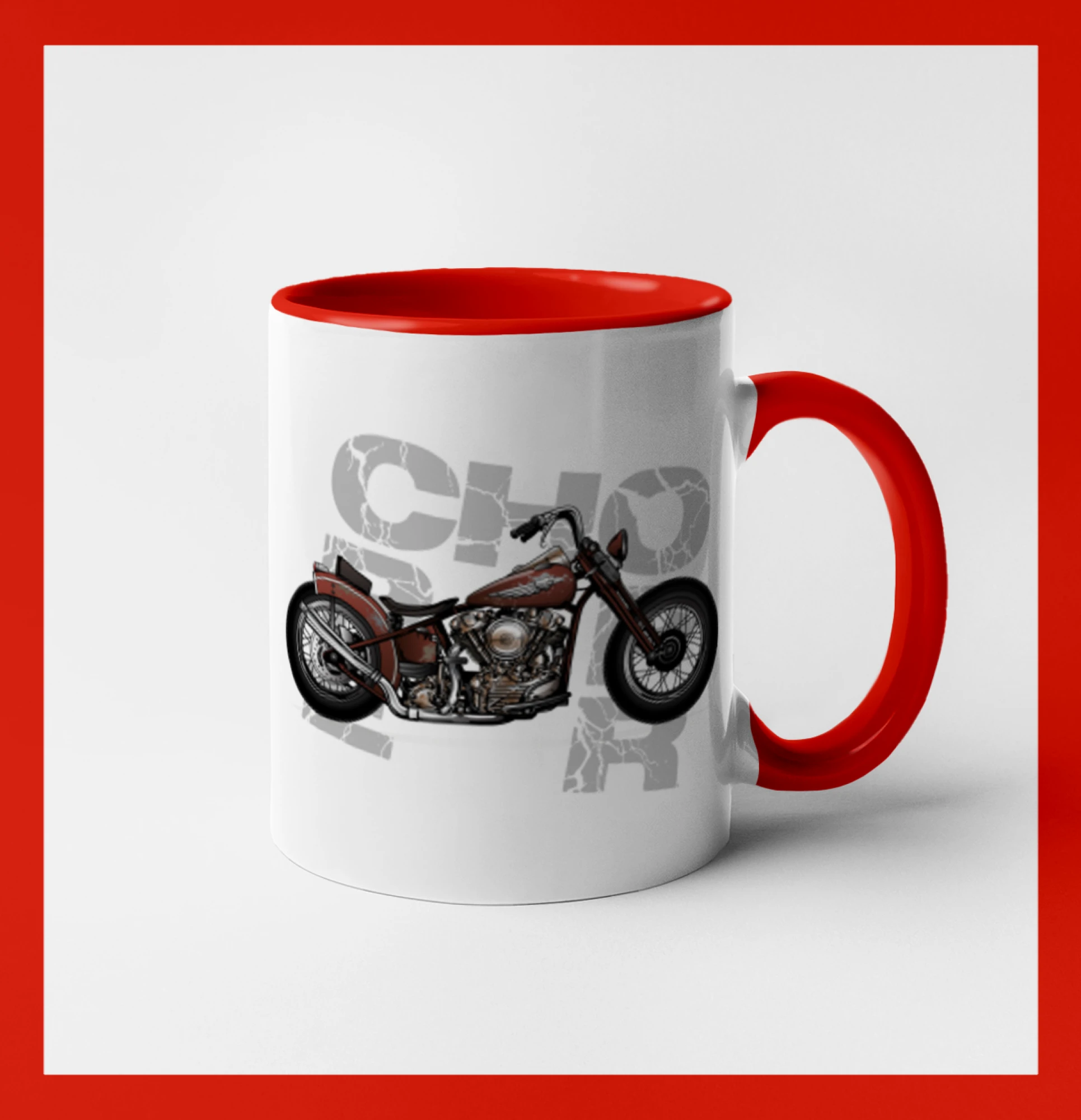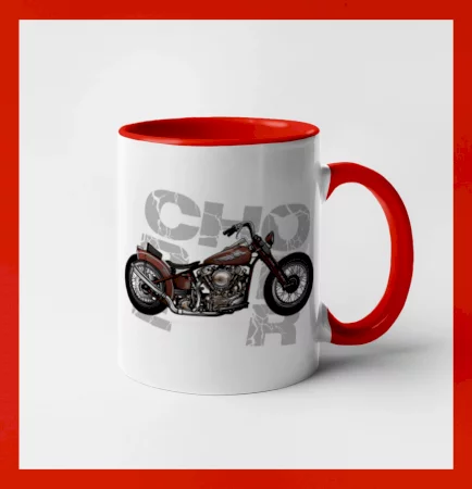Tričko pre motorkárov, na ktorom je červená motorka chopper. Motocykel by mal mať na tričku každý správny motorkár. Moto tričko s motorkou je vhodný darček pre motorkárov.