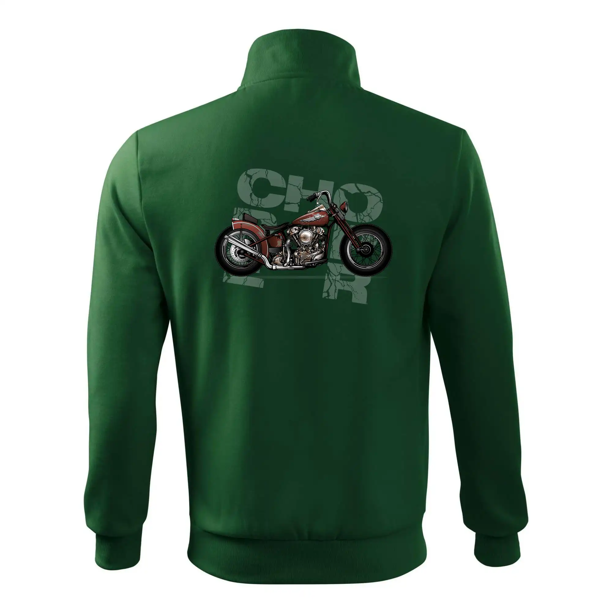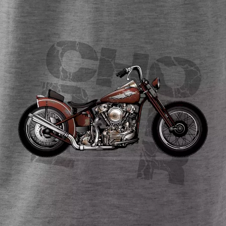 Tričko pre motorkárov, na ktorom je červená motorka chopper. Motocykel by mal mať na tričku každý správny motorkár. Moto tričko s motorkou je vhodný darček pre motorkárov.