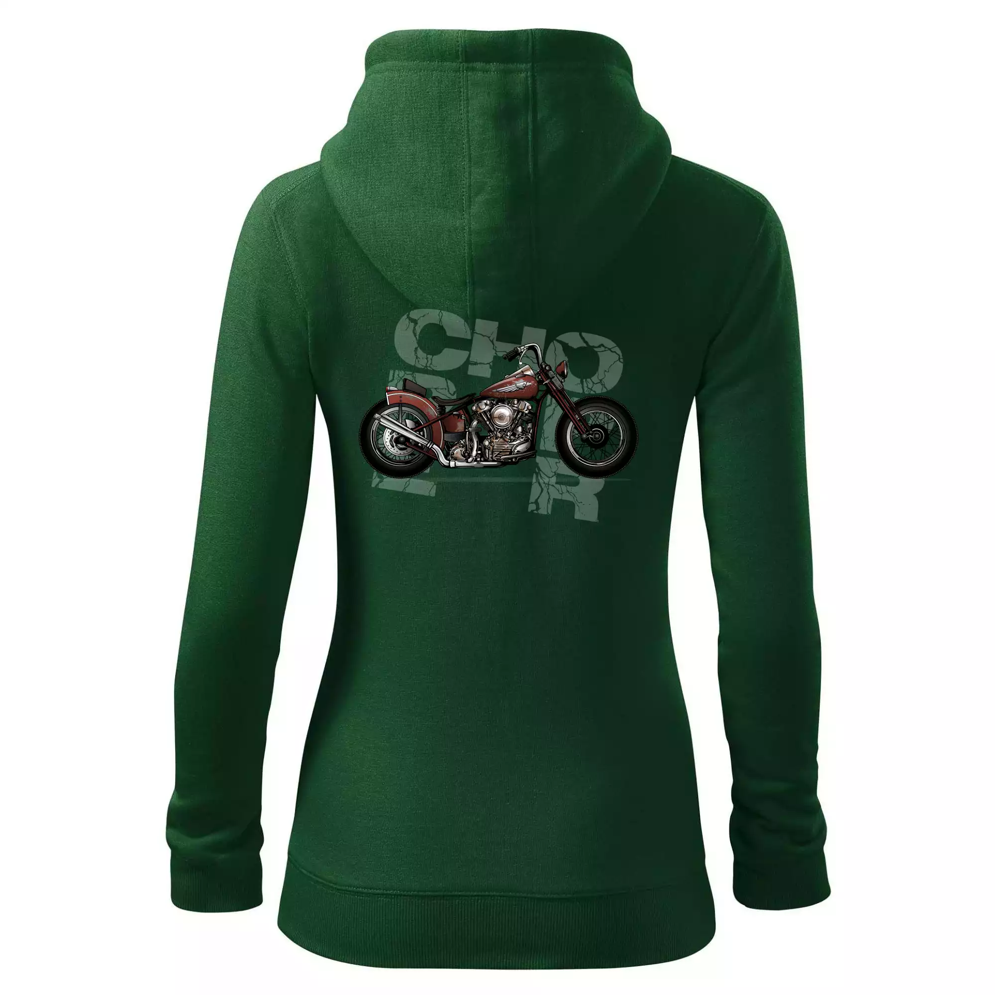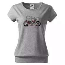 Tričko pre motorkárov, na ktorom je červená motorka chopper. Motocykel by mal mať na tričku každý správny motorkár. Moto tričko s motorkou je vhodný darček pre motorkárov.
