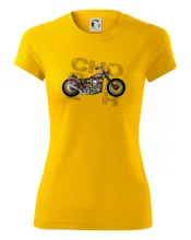 Tričko pre motorkárov, na ktorom je červená motorka chopper. Motocykel by mal mať na tričku každý správny motorkár. Moto tričko s motorkou je vhodný darček pre motorkárov.