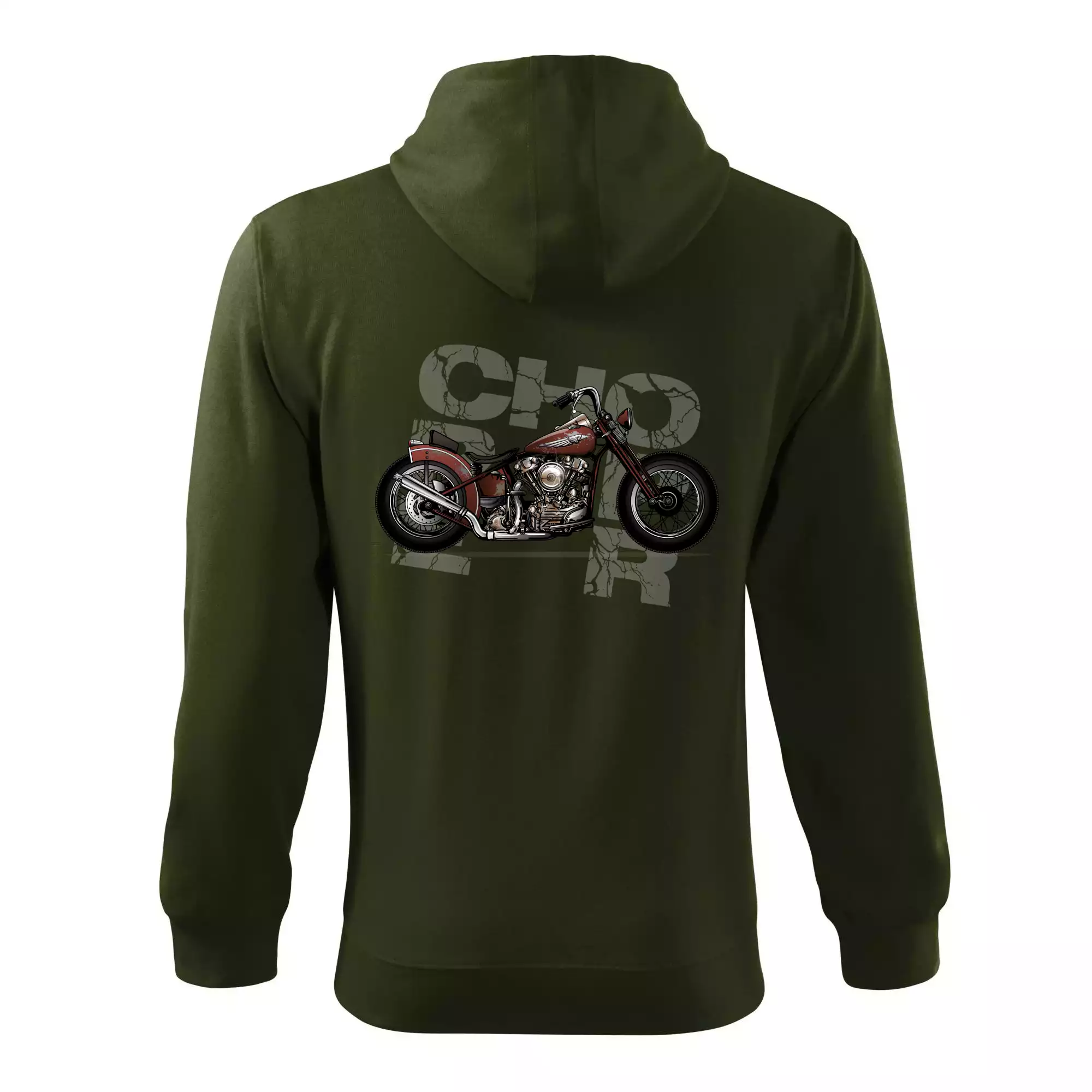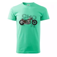 Tričko pre motorkárov, na ktorom je červená motorka chopper. Motocykel by mal mať na tričku každý správny motorkár. Moto tričko s motorkou je vhodný darček pre motorkárov.