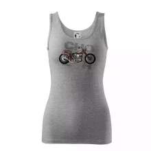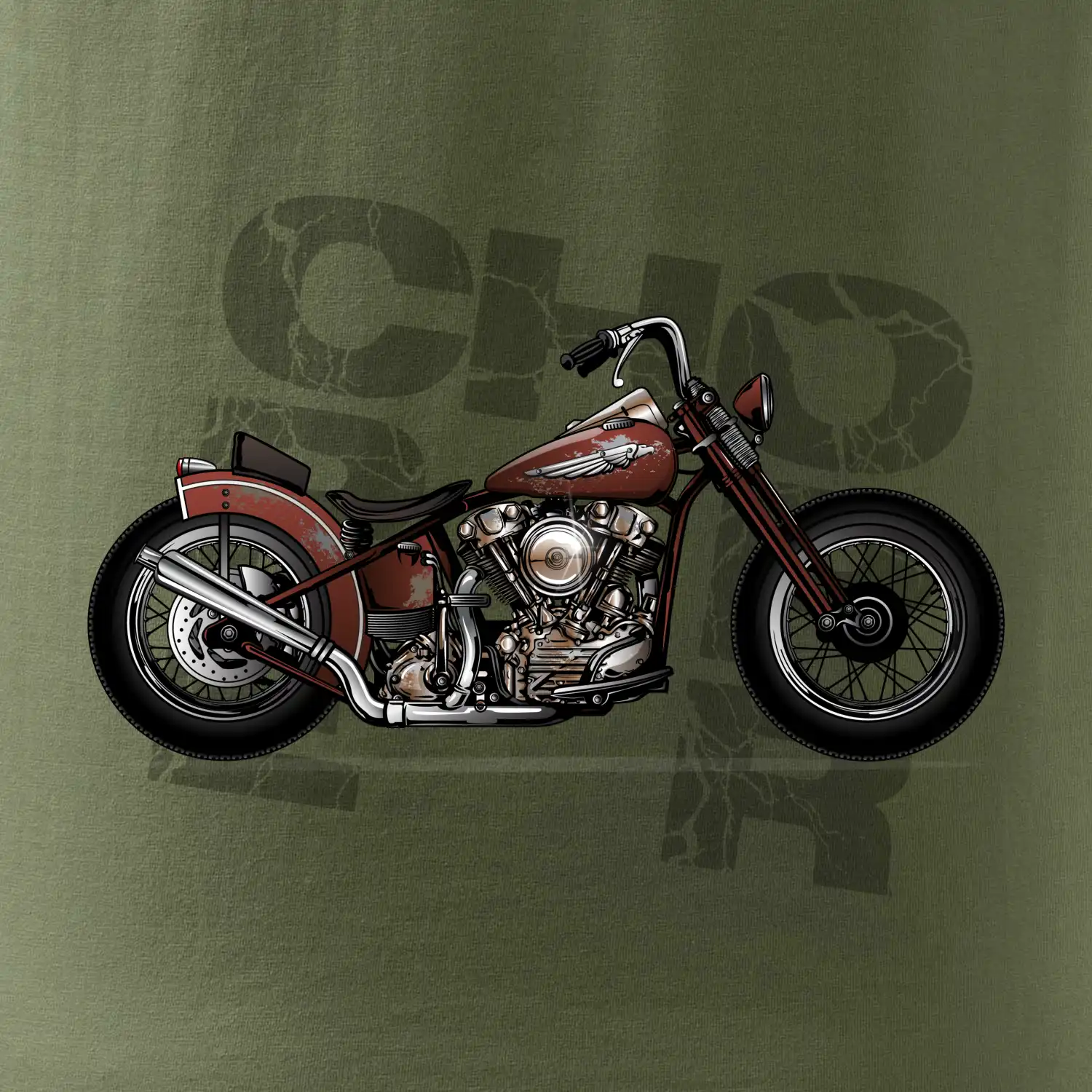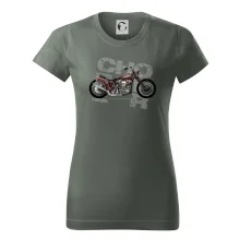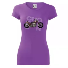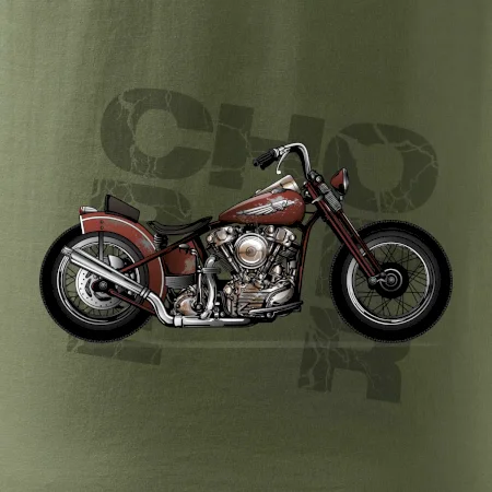 Tričko pre motorkárov, na ktorom je červená motorka chopper. Motocykel by mal mať na tričku každý správny motorkár. Moto tričko s motorkou je vhodný darček pre motorkárov.