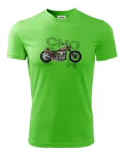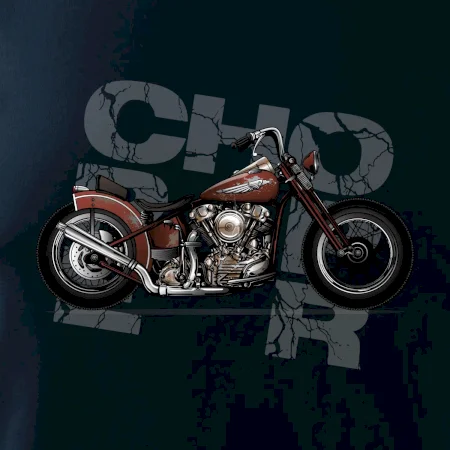 Tričko pre motorkárov, na ktorom je červená motorka chopper. Motocykel by mal mať na tričku každý správny motorkár. Moto tričko s motorkou je vhodný darček pre motorkárov.