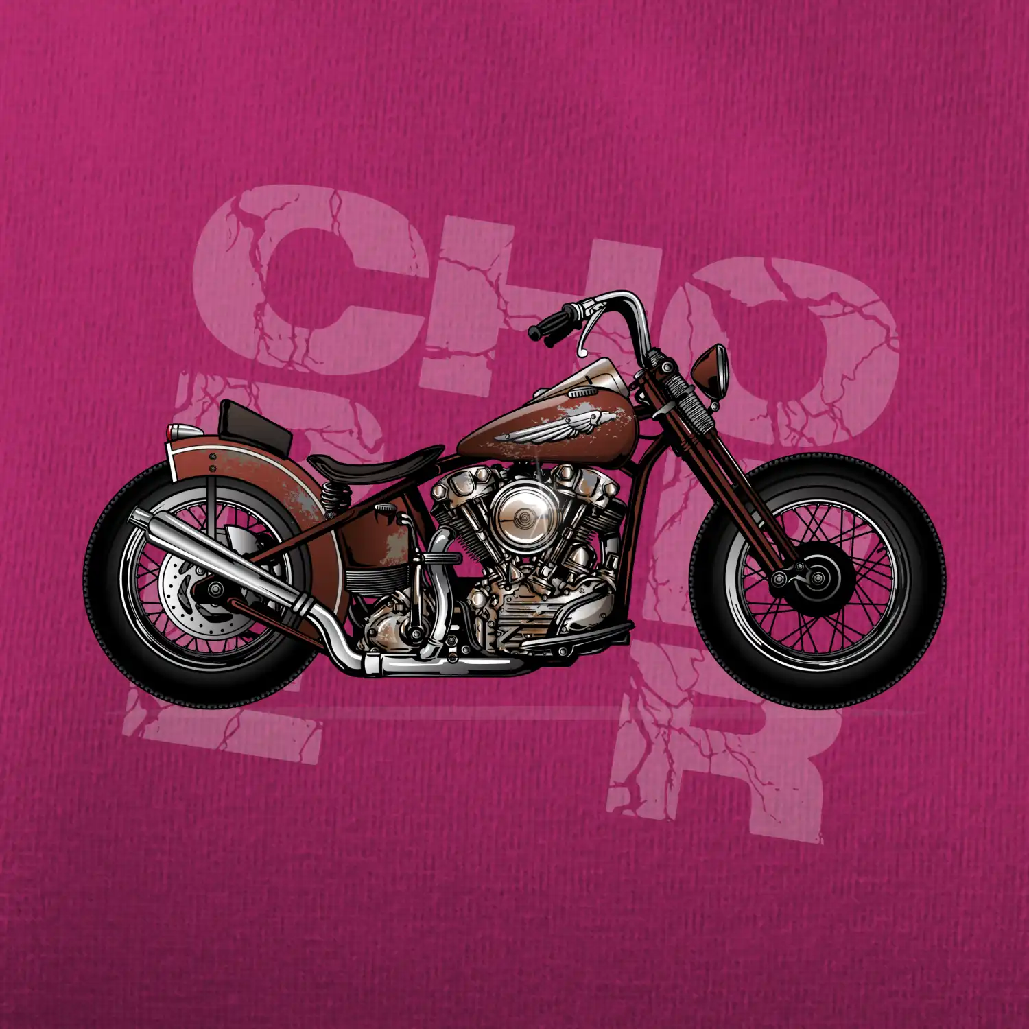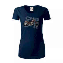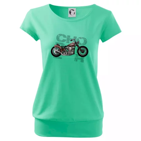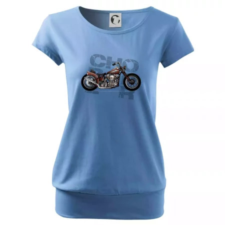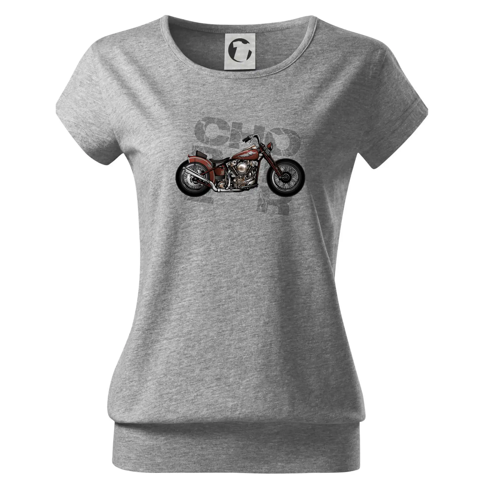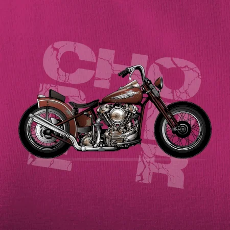 Tričko pre motorkárov, na ktorom je červená motorka chopper. Motocykel by mal mať na tričku každý správny motorkár. Moto tričko s motorkou je vhodný darček pre motorkárov.
