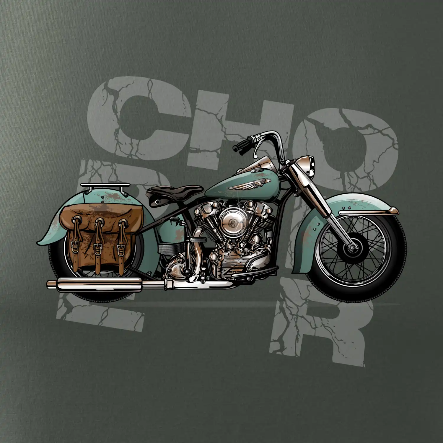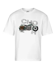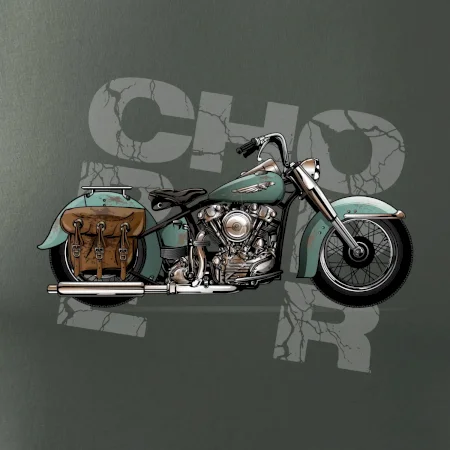 Tričko pre motorkárov, na ktorom je modrá motorka chopper s brašňou. Motocykel by mal mať na tričku každý správny motorkár. Moto tričko s motorkou je vhodný darček pre motorkárov.