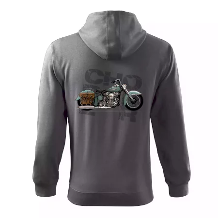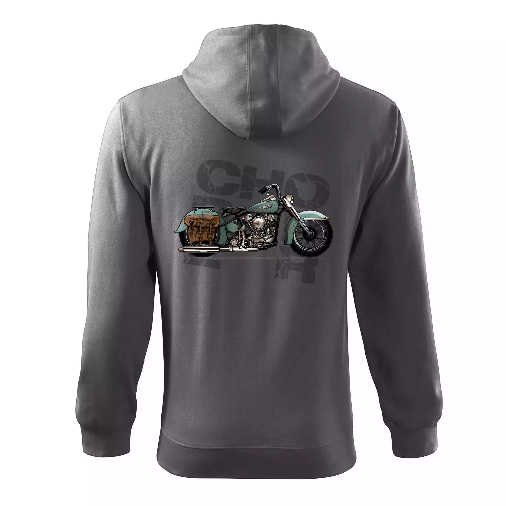 Tričko pre motorkárov, na ktorom je modrá motorka chopper s brašňou. Motocykel by mal mať na tričku každý správny motorkár. Moto tričko s motorkou je vhodný darček pre motorkárov.