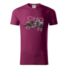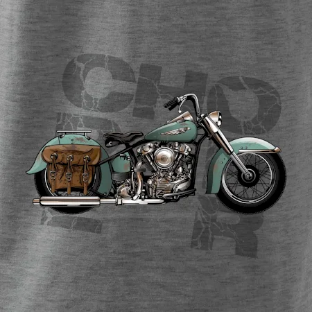 Tričko pre motorkárov, na ktorom je modrá motorka chopper s brašňou. Motocykel by mal mať na tričku každý správny motorkár. Moto tričko s motorkou je vhodný darček pre motorkárov.