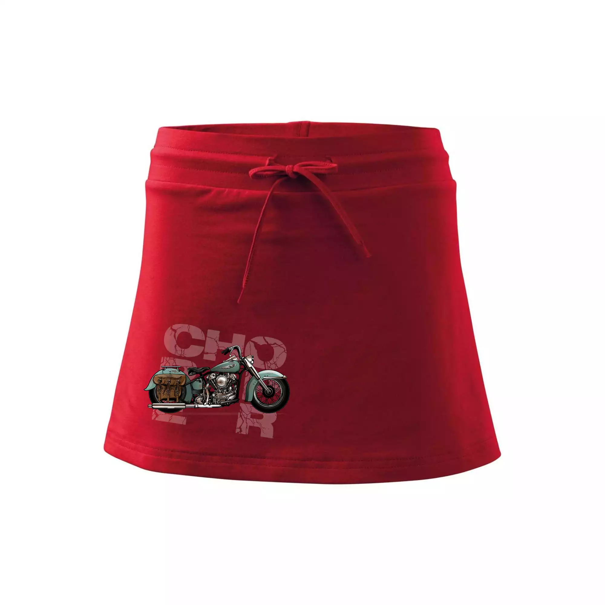Tričko pre motorkárov, na ktorom je modrá motorka chopper s brašňou. Motocykel by mal mať na tričku každý správny motorkár. Moto tričko s motorkou je vhodný darček pre motorkárov.