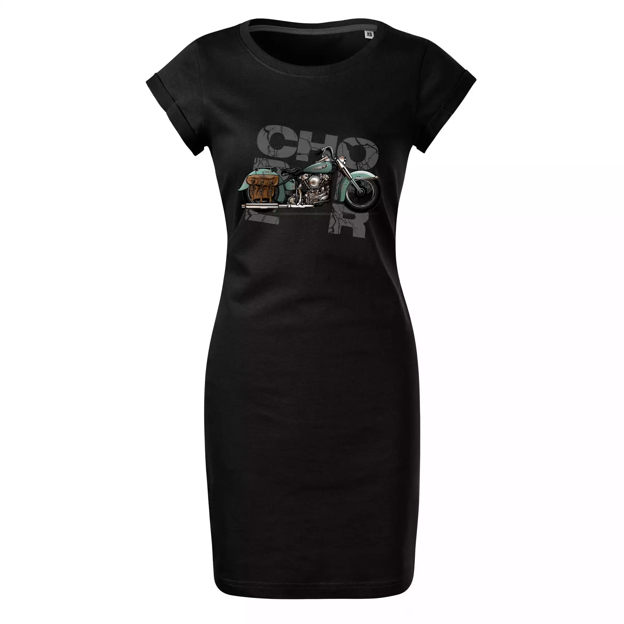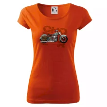 Tričko pre motorkárov, na ktorom je modrá motorka chopper s brašňou. Motocykel by mal mať na tričku každý správny motorkár. Moto tričko s motorkou je vhodný darček pre motorkárov.