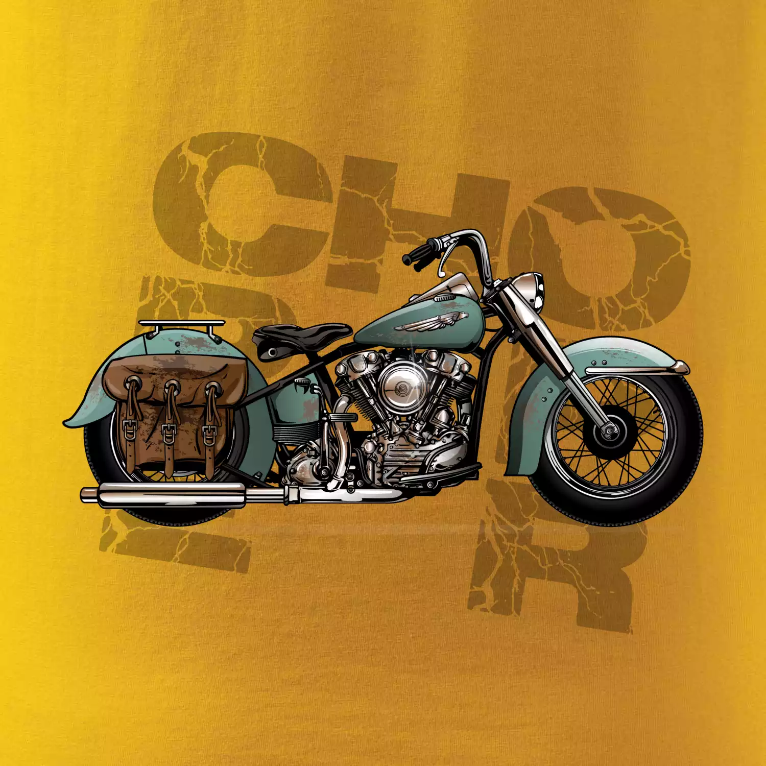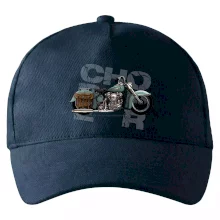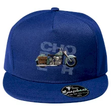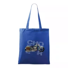 Tričko pre motorkárov, na ktorom je modrá motorka chopper s brašňou. Motocykel by mal mať na tričku každý správny motorkár. Moto tričko s motorkou je vhodný darček pre motorkárov.