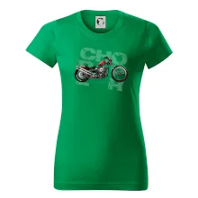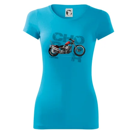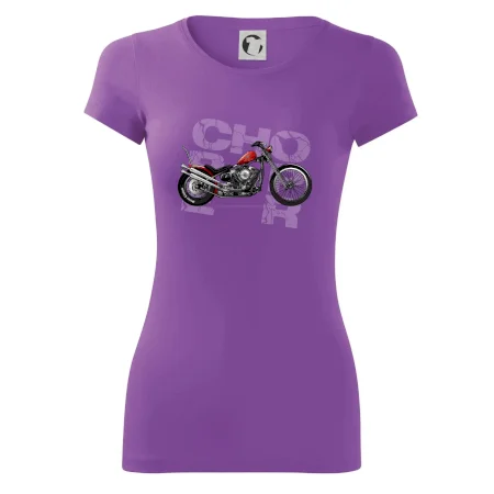 Tričko pre motorkárov, na ktorom je červená motorka chopper. Motocykel by mal mať na tričku každý správny motorkár. Moto tričko s motorkou je vhodný darček pre motorkárov.