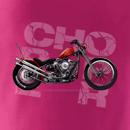 Tričko pre motorkárov, na ktorom je červená motorka chopper. Motocykel by mal mať na tričku každý správny motorkár. Moto tričko s motorkou je vhodný darček pre motorkárov.