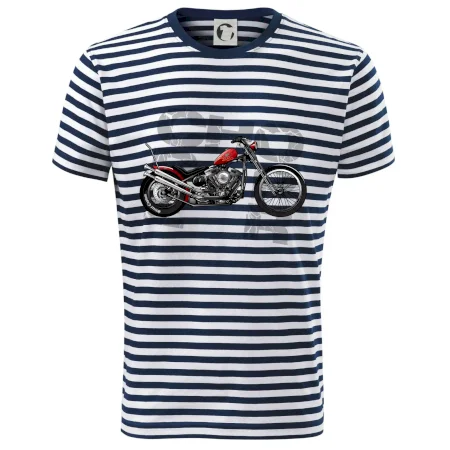Tričko pre motorkárov, na ktorom je červená motorka chopper. Motocykel by mal mať na tričku každý správny motorkár. Moto tričko s motorkou je vhodný darček pre motorkárov.