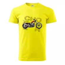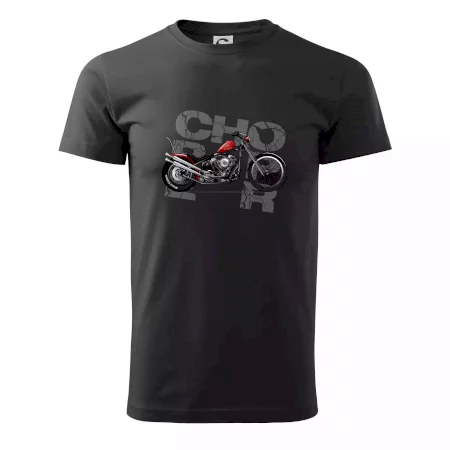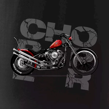 Tričko pre motorkárov, na ktorom je červená motorka chopper. Motocykel by mal mať na tričku každý správny motorkár. Moto tričko s motorkou je vhodný darček pre motorkárov.
