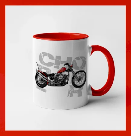 Tričko pre motorkárov, na ktorom je červená motorka chopper. Motocykel by mal mať na tričku každý správny motorkár. Moto tričko s motorkou je vhodný darček pre motorkárov.