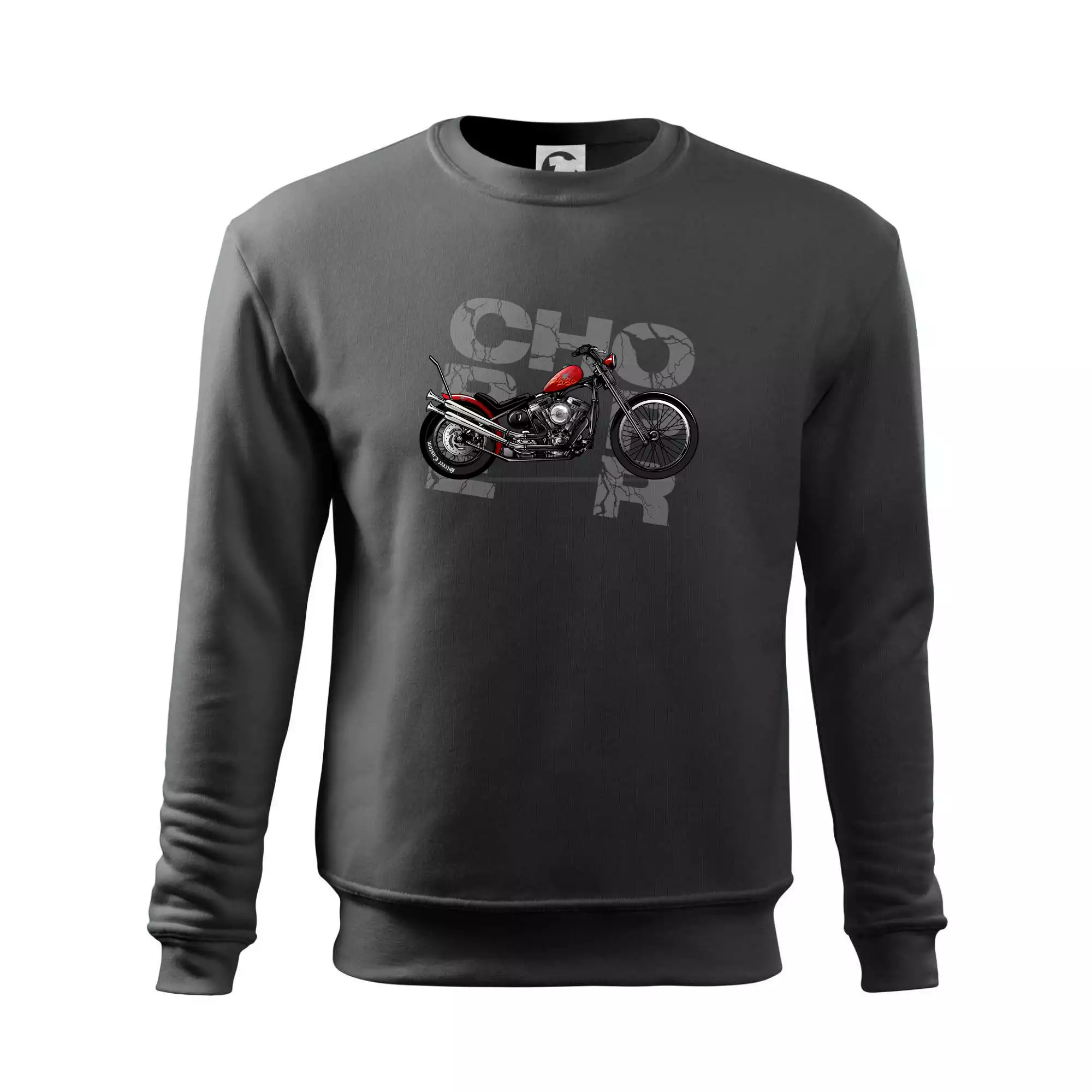 Tričko pre motorkárov, na ktorom je červená motorka chopper. Motocykel by mal mať na tričku každý správny motorkár. Moto tričko s motorkou je vhodný darček pre motorkárov.
