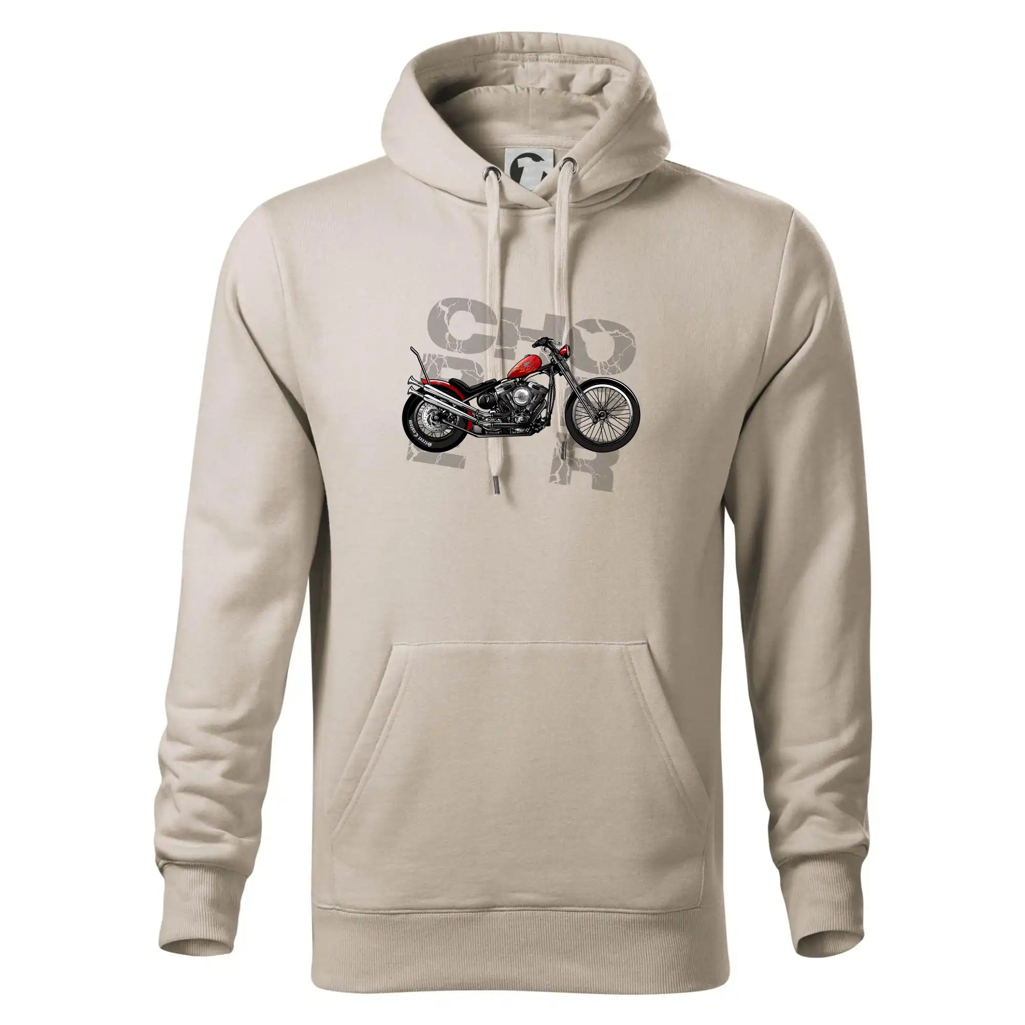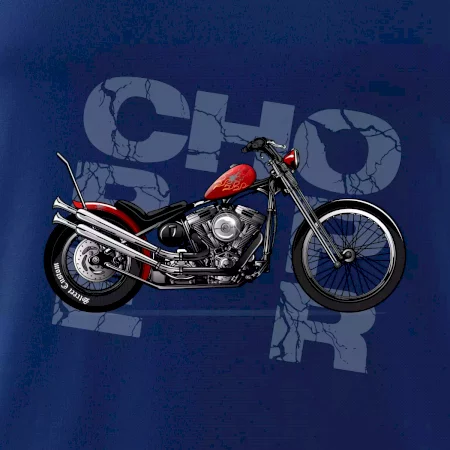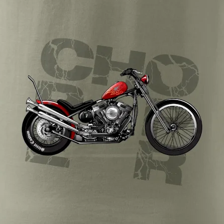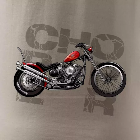 Tričko pre motorkárov, na ktorom je červená motorka chopper. Motocykel by mal mať na tričku každý správny motorkár. Moto tričko s motorkou je vhodný darček pre motorkárov.