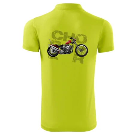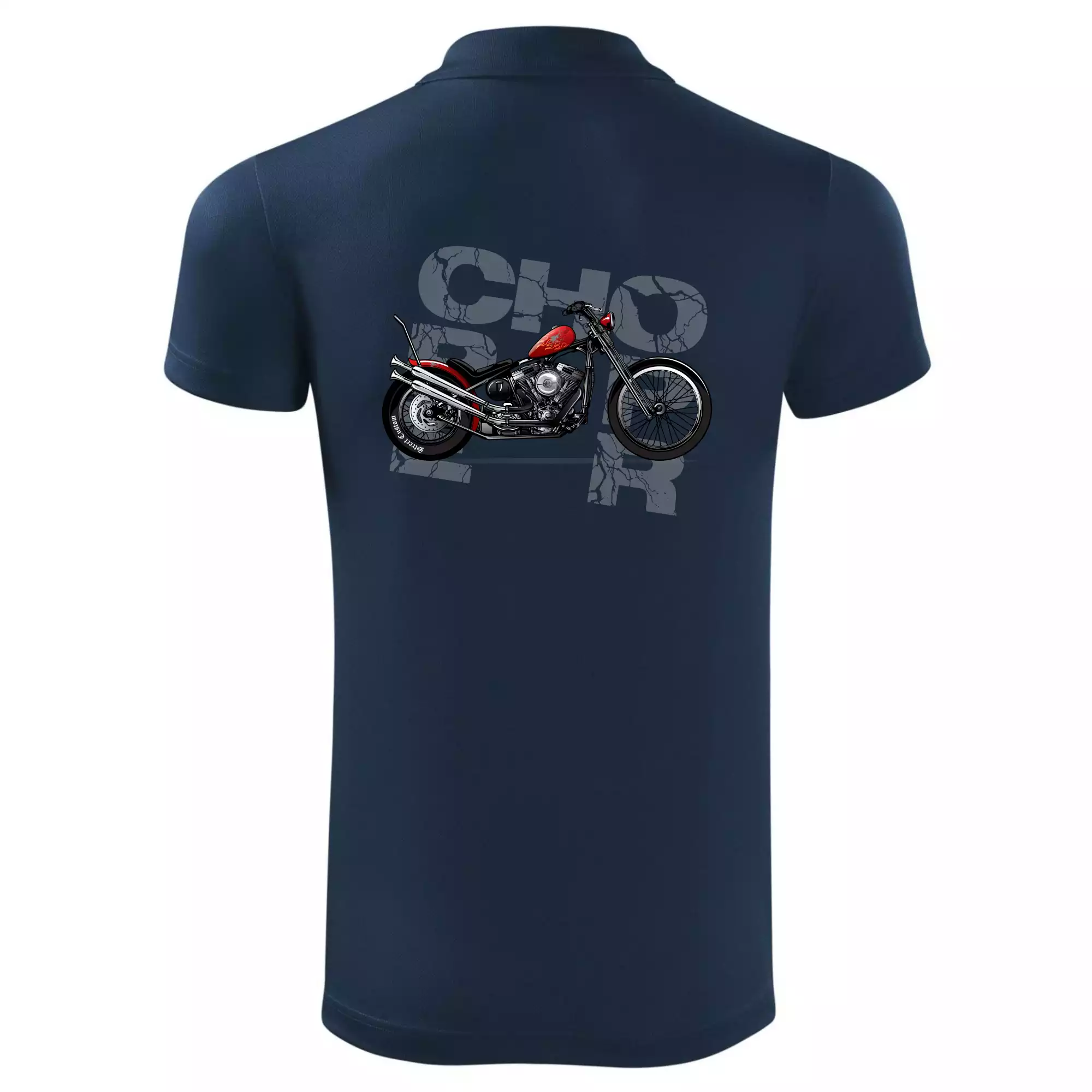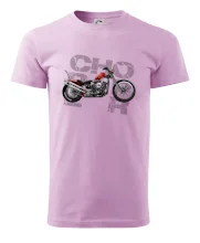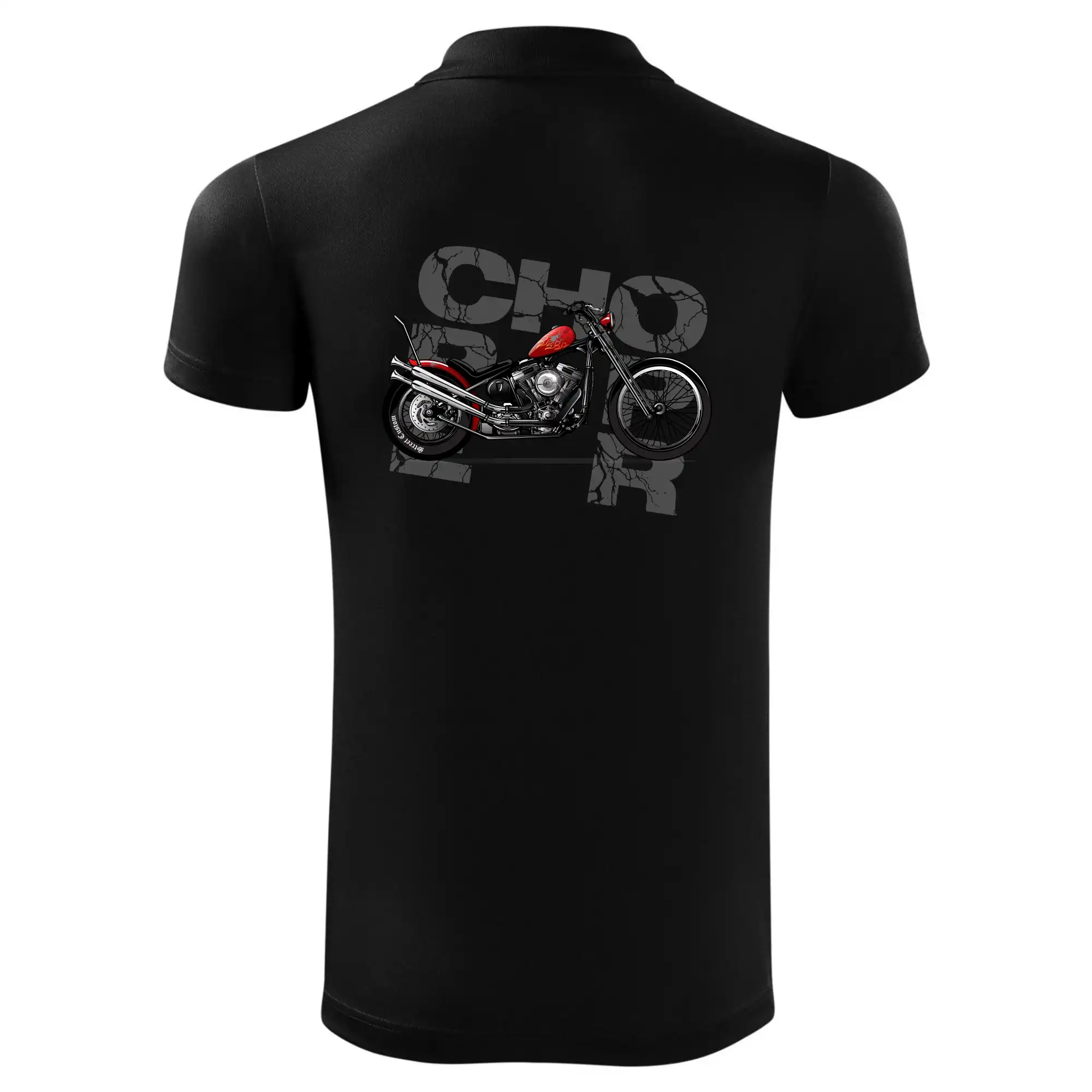 Tričko pre motorkárov, na ktorom je červená motorka chopper. Motocykel by mal mať na tričku každý správny motorkár. Moto tričko s motorkou je vhodný darček pre motorkárov.
