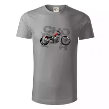 Tričko pre motorkárov, na ktorom je červená motorka chopper. Motocykel by mal mať na tričku každý správny motorkár. Moto tričko s motorkou je vhodný darček pre motorkárov.