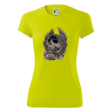 Tričko pre motorkára, na ktorom je pekelný jazdec - lebka a koleso s krídlami, si musí zaobstarať každý milovník motoriek. Chopper s tričkom, na ktorom, je motorkárska lebka s krídlami je skvelá kombinácia na vychádzku.