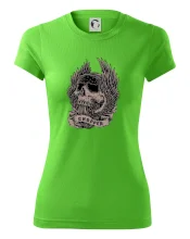 Tričko pre motorkára, na ktorom je pekelný jazdec - lebka a koleso s krídlami, si musí zaobstarať každý milovník motoriek. Chopper s tričkom, na ktorom, je motorkárska lebka s krídlami je skvelá kombinácia na vychádzku.