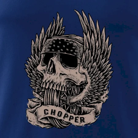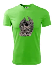 Tričko pre motorkára, na ktorom je pekelný jazdec - lebka a koleso s krídlami, si musí zaobstarať každý milovník motoriek. Chopper s tričkom, na ktorom, je motorkárska lebka s krídlami je skvelá kombinácia na vychádzku.