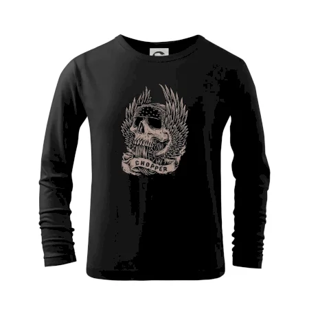 Tričko pre motorkára, na ktorom je pekelný jazdec - lebka a koleso s krídlami, si musí zaobstarať každý milovník motoriek. Chopper s tričkom, na ktorom, je motorkárska lebka s krídlami je skvelá kombinácia na vychádzku.