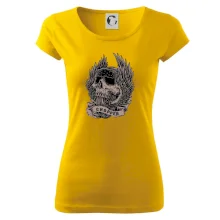Tričko pre motorkára, na ktorom je pekelný jazdec - lebka a koleso s krídlami, si musí zaobstarať každý milovník motoriek. Chopper s tričkom, na ktorom, je motorkárska lebka s krídlami je skvelá kombinácia na vychádzku.